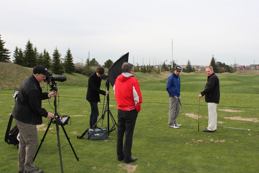 The crew sets up for the 'action shot'. Bob provides some last minute direction for both cast and crew.