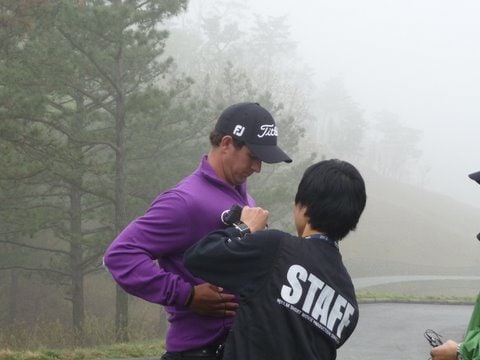 Titleist ambassador Adam Scott gets his microphone for some TV interviews