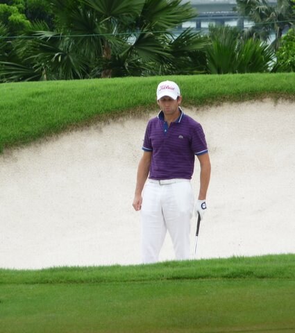 Staffer Gregory Bourdy takes on a bunker in his practice round