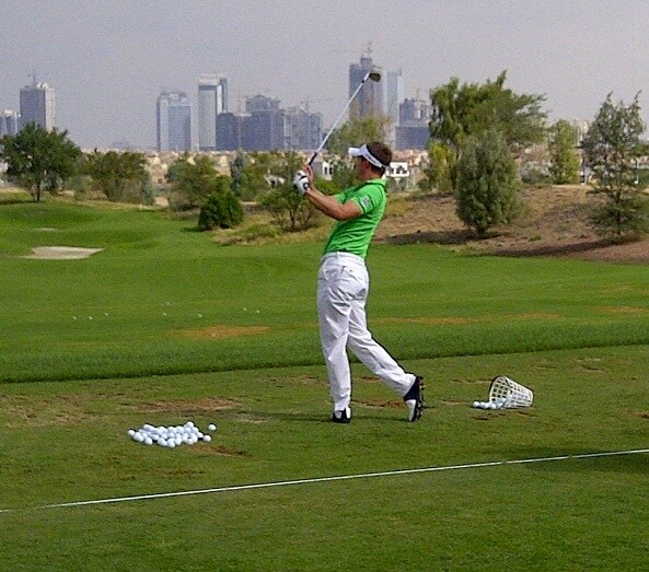 New prototype Pro V1x loyalist Luke Donald gets down to work on the range