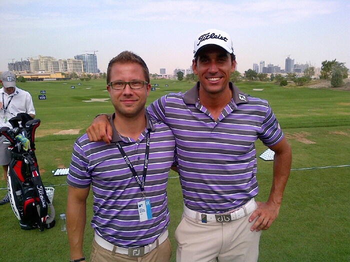 Shirt friends! Titleist tech rep Mattias Jelver and Titleist ambassador Rafa Cabrera-Bello share a laugh "You said you were going to wear the blue one!!"