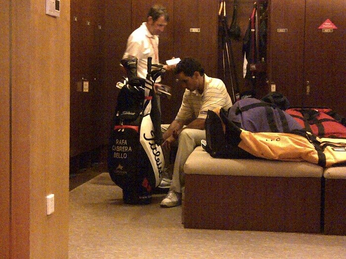 Titleist ambassador Rafa Cabrera-Bello and his caddy Batts get ready to go out