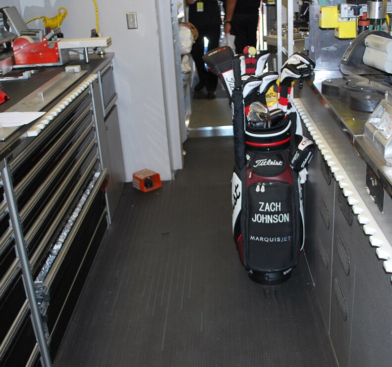 Zach Johnson's Titleist bag sat in the Titleist Tour Van during Tuesday's Ryder Cup captain's pick announcement. (Zach, who will be playing in his second Ryder Cup, needed new grips and was also getting ready to put in some work with the 910 prototype driver.)
