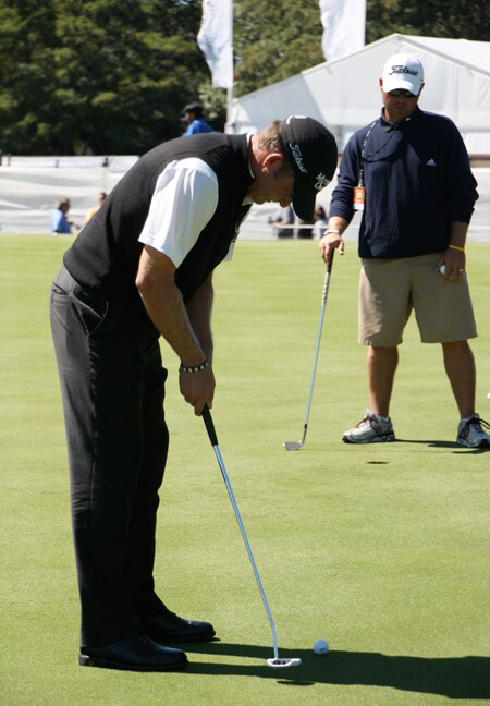Meanwhile, Titleist Brand Ambassador Jason Bohn practices his putting stroke.