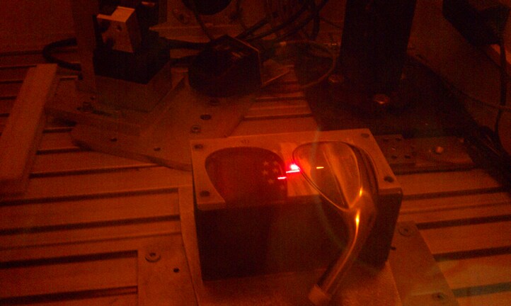 Here the Vokey team is laser-etching the American and European flags onto the wedges.