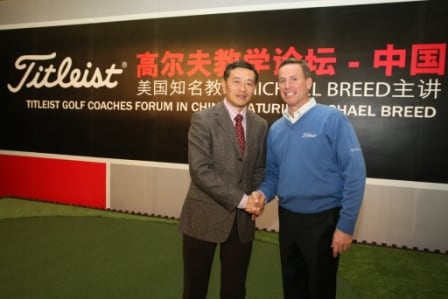 Michael greets Beijing Golf Association Deputy Secretary Mr. Yue Fan.
