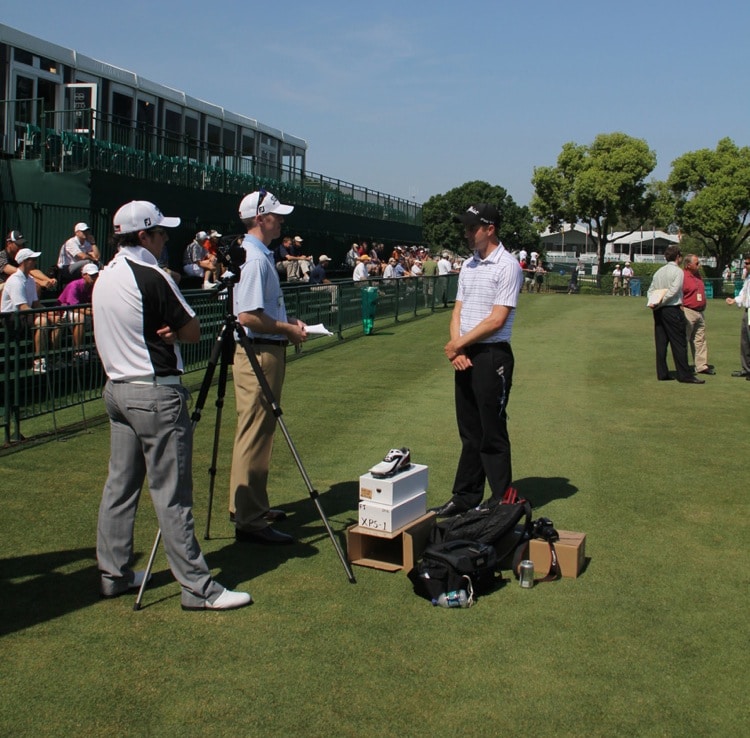 Titleist Brand Ambassador Chris Kirk does some filming on the range with the FootJoy crew.