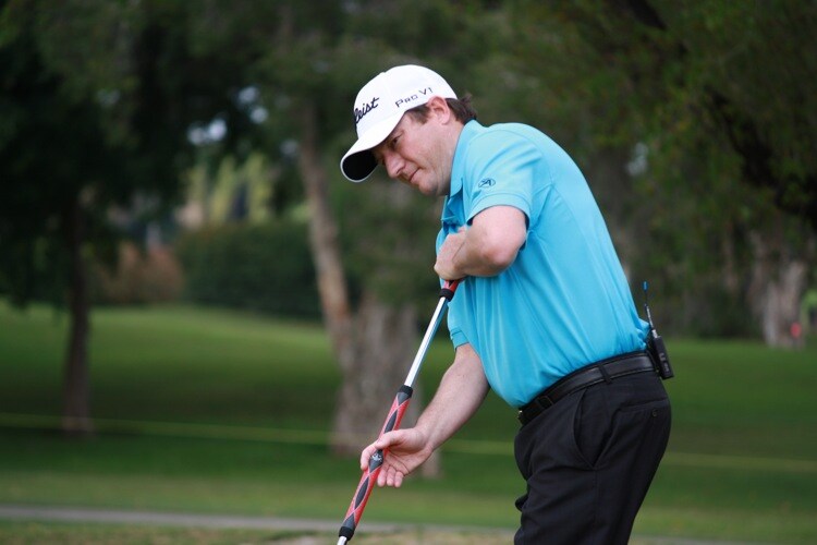 Back on the ground, Titleist Brand Ambassador Tim Clark demonstrates the proper way to use a long putter.