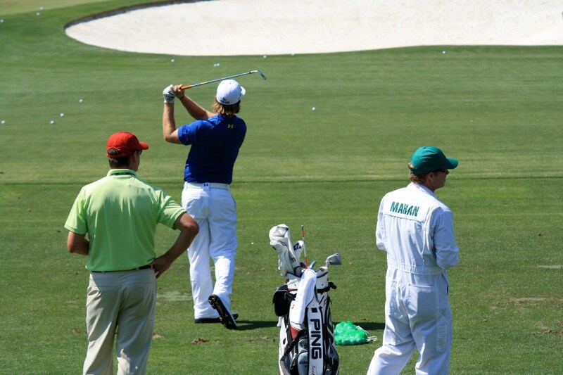 Pro V1x loyalist Hunter Mahan warms up with some wedges.