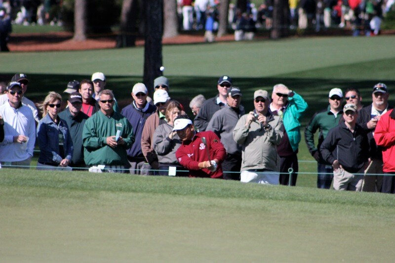 Pro V1 loyalist KJ Choi hits a pitch shot from the side of the second green.