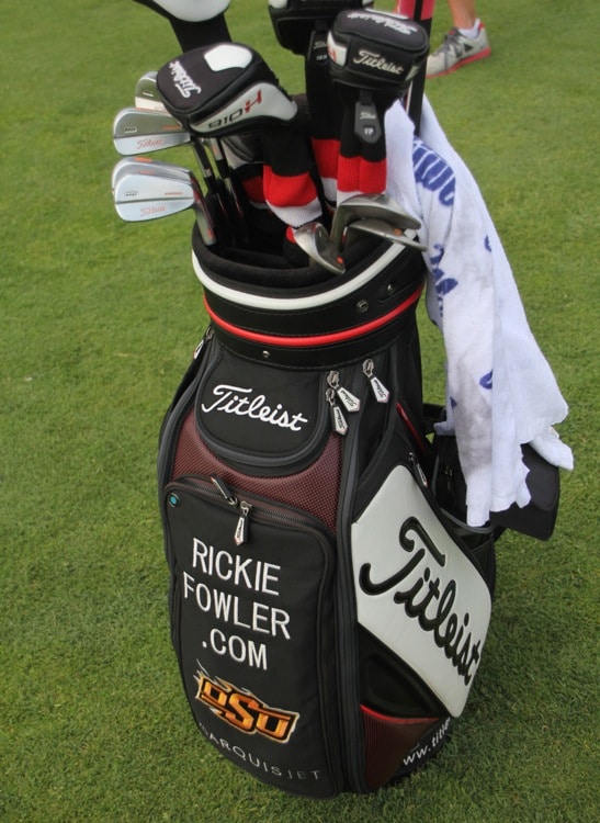 What else is in Rickie's bag? Titleist 910F 13.5º fairway metal (Mitsubishi Rayon Diamana 'ahina 80); MB irons (4-9, True Temper Dynamic Gold); and three Vokey Design Spin Milled wedges: 248•10º, 254•14º and TVD59º (True Temper Dynamic Gold).