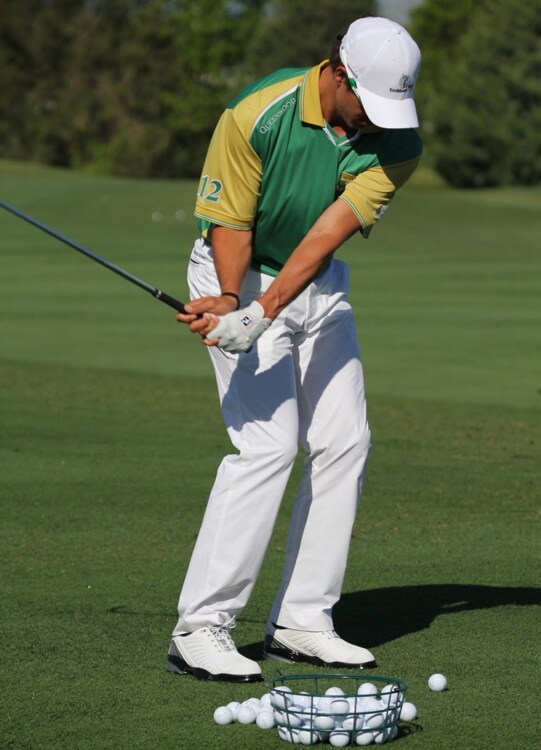 Adam works through a bucket of Pro V1 golf balls.