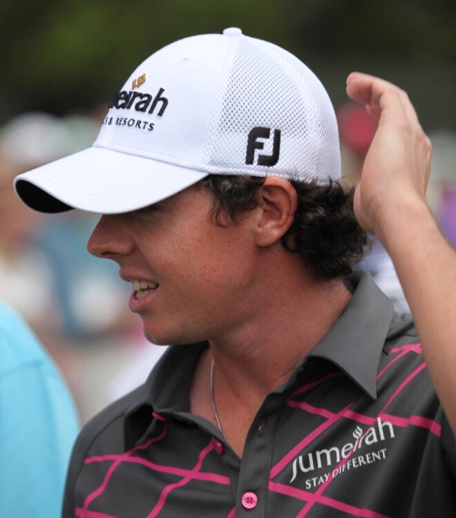 Titleist Brand Ambassador Rory McIlroy arrives at the Augusta National range.
