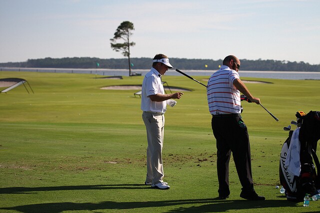Here, Jason check in with a Titleist Tour Rep to get his SureFit Tour hosel setting dialed-in on the range.