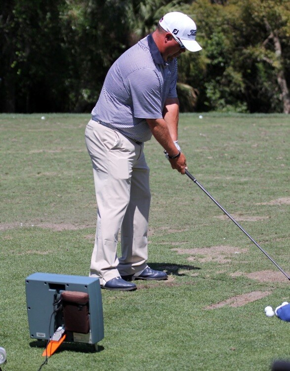 Titleist Brand Ambassador Kris Blanks puts in some work on the TrackMan launch monitor.
