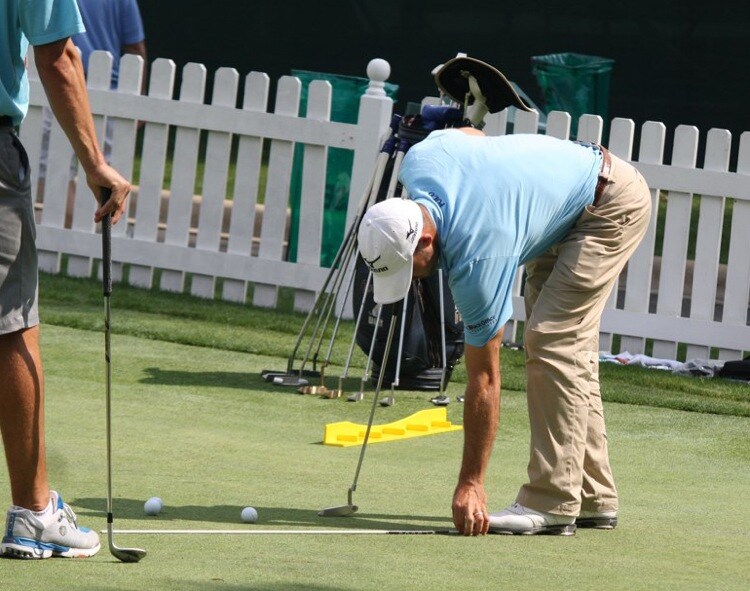 Pro V1x loyalist Jonathan Byrd sets up for a putting drill.