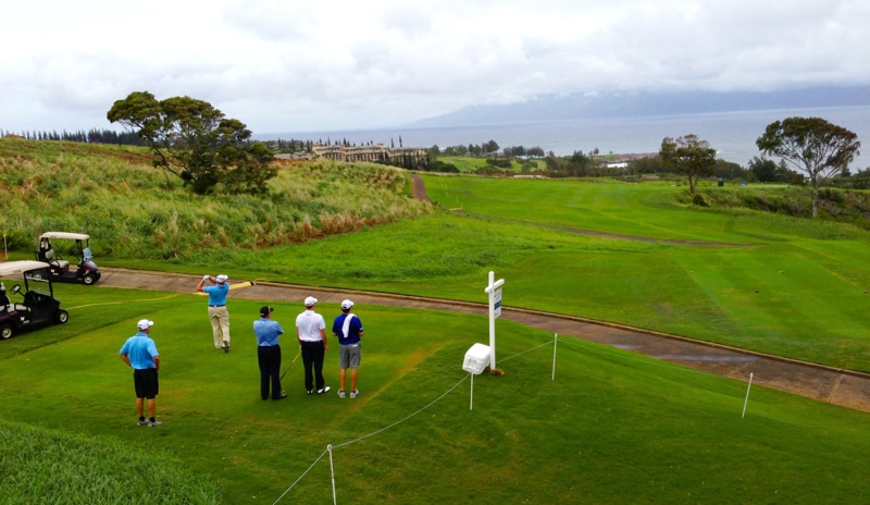 Here Stallings trades tee shots on the 7th with fellow Titleist Brand Ambassador...