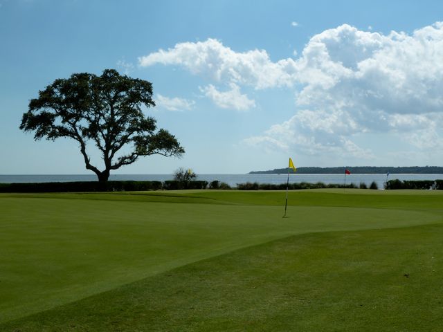 You can't beat the view from Sea Island's short game practice facility.