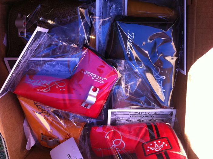 Special delivery... a box of Scotty Cameron headcovers signed by Scotty.