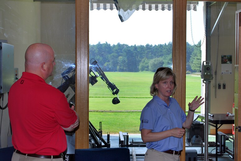 Karen Gray, Supervisor of Player Research at Titleist's Manchester Lane Test Facility, gave Team Titleist members a look at the robotic driving machine.