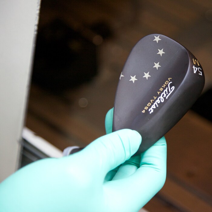 Initial result of the laser etch process makes a strong contrast against the TVD Black Oxide head.