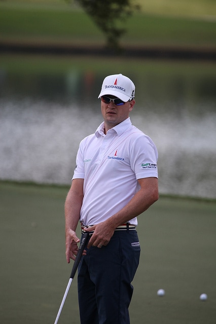 Zach Johnson also puts in some time on the green looking to dial in the pace with his Pro V1x.