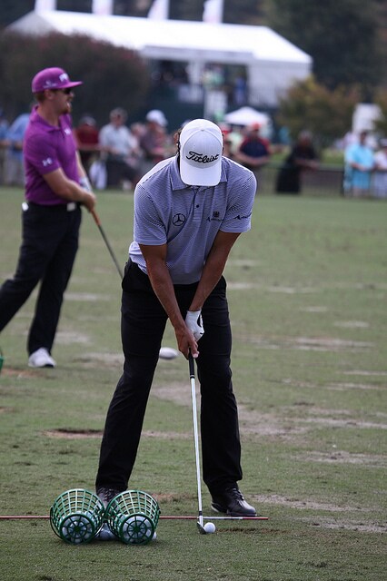 Adam Scott on the range working through his set of Titleist MB irons.