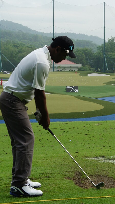 Titleist Golf Ball Loyalist Siddikur hitting balls on the range.
