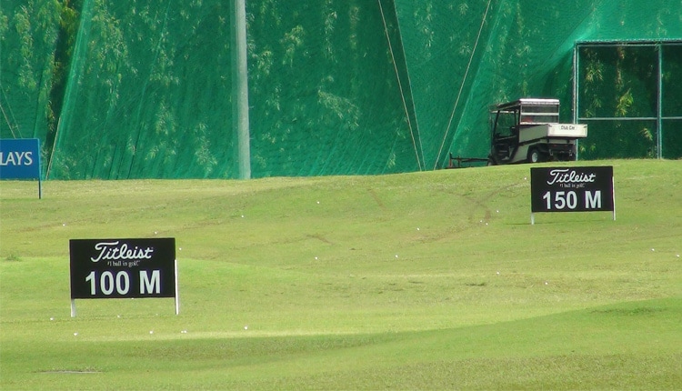 Its an all Titleist range at the 2012 Barclay's Singapore Open with golfers hitting Pro V1X Practice Balls.
