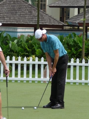 Titleist Brand Ambassador Rys Davis shielding his neck from Malaysia's hot sun while having a practice putt.