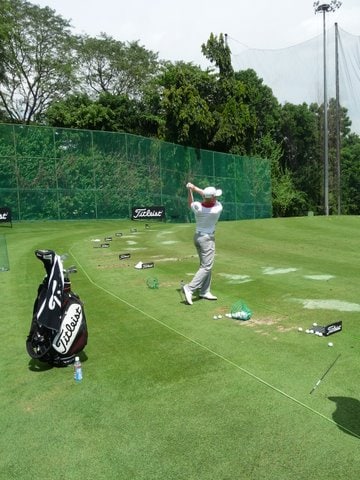Titleist Brand Ambassador Andrew Dodt getting some practise in on the range.