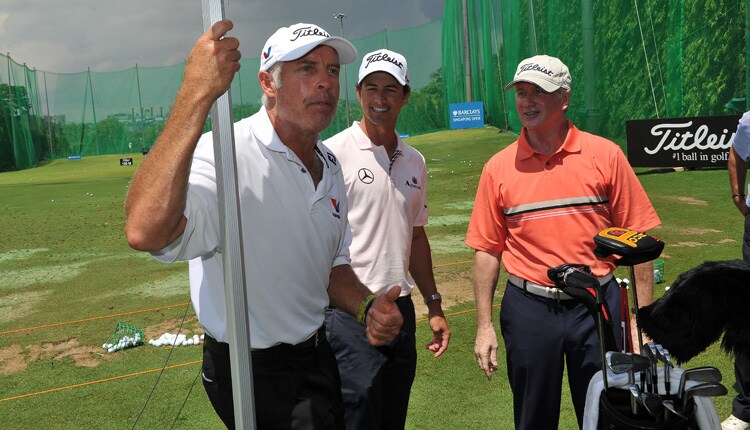 And just as Williams was telling us that of all the world class golfers he's worked with, Adam was by far the straightest driver of the ball, look who arrives.