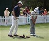 Titleist Brand Ambassador S.Y. Noh tests some new Scotty Cameron Select putters with the help of Tour Rep Kelley Moser.