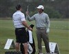 Titleist Brand Ambassador Brendon de Jonge talks shop with Scotty Cameron Tour Rep Larry Silveira.
