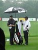 Nick Watney waiting for a break in the rain on Wednesday