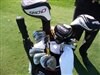 Titleist tech rep Scott Morrison peers through Soren Hansen's bag