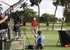 Titleist Brand Ambassador Steve Stricker laughs at a comment from off-camera while posing for some B-roll.