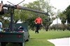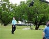 Back on the ground, Titleist Brand Ambassador Tim Clark demonstrates the proper way to use a long putter.