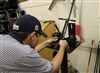 Here's Vokey Tour Representative Aaron Dill, hard at work in Waialae's bag storage room/makeshift workshop.