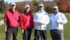 Titleist's Rick Veitch and Kim Kaye (red) met FootJoy's Adam Fougere and Kevin Borges in the morning Foursomes.