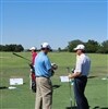Here Anderson (right) speaks with Titleist Tour Rep Jim Curran.