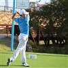 In a practice round, Aaron Goldberg tees off the first hole. Trusting a Pro V1x golf ball, Aaron has hit 75% of his fairways this year, which ranks 4th on the Web.com Tour.