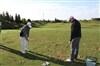 Matt and Sean keeping warm as they fire some Pro V1x's down the range.