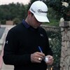 Gary Woodland marks his Titleist Pro V1x before a practice round.