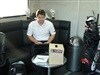 Titleist Tour Rep Ryan Hunt catches up on some admin during a rare quiet period