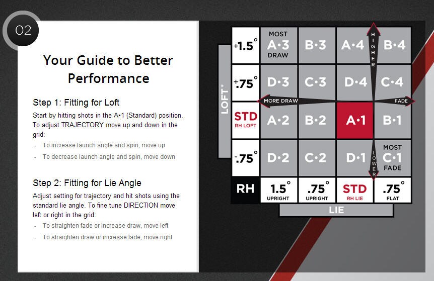 Hi David, The flattest setting is B1 at standard loft and that moves it .75 flat.