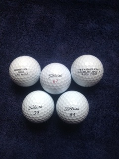 Thank you for all the kind responses and wishes. I find about 2-3 custom numbered Pro V's each time I recover balls, but am mostly finding duplicates any more. Here's a few new additions since my original post plus a couple I found from an obvious Caddyshack fan!