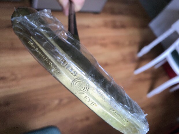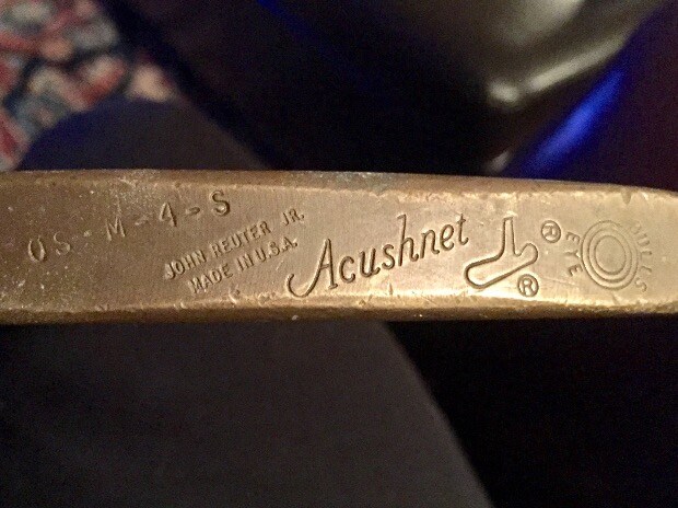 Going through grandpa’s clubs today, which he gave me back in the 80s, I rediscovered this Acushnet Bulls Eye putter, stamped with “John Reuter Jr, Made in the U.S.A.”.