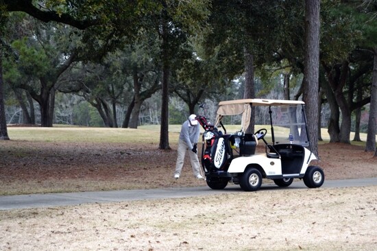 I always ride, so I tend to keep as many options in the bag as possible, so I have a full bag or 14 sticks. I have Driver, 3W, 3H, 4, 5, 6, 7, 8, 9, PW, 50, Vokey SM5 54, 58, and Scotty Cameron California Monterrey. Of course the ball pocket is always filled with fresh ProV1Xs.