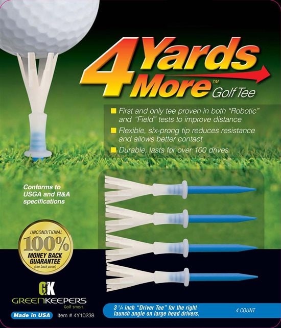 I started using the "4 Yards More" plastic tees a couple of years ago.  I call them my "forever tees" because I've yet to break one.  I like the consistent height for my driver, which encourages an ascending blow.  I don't know about the +4yds part of it, but these are the only tees I use anymore. I keep one in each of my golf bags.  They are great for the range, too, because they tend to stay put, and are virtually unbreakable.